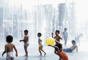 Kids plying in a public fountain