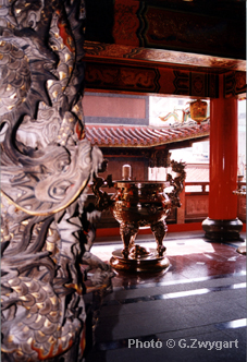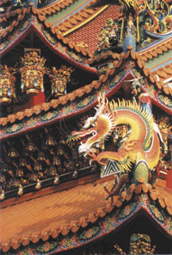 Detail of the massive roof of the Matsu temple in Guandu - Photo Olivier Devillard/1999